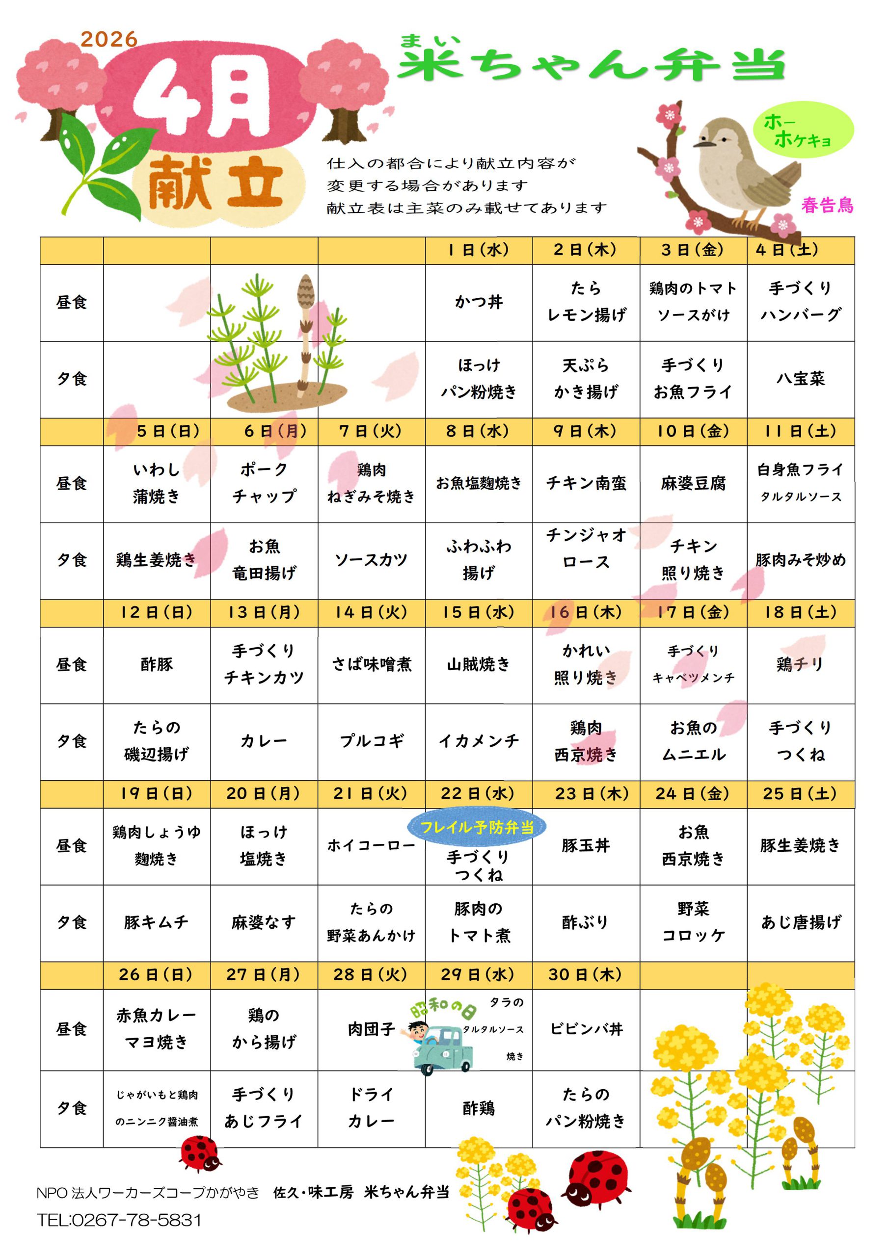 令和8年4月22日に佐久総合病院管理栄養士さん、地域の割烹屋さん、クリニックのドクター、臼田健康館、米ちゃん弁当がメニューを出し合ってフレイル予防弁当を作ることになりました。